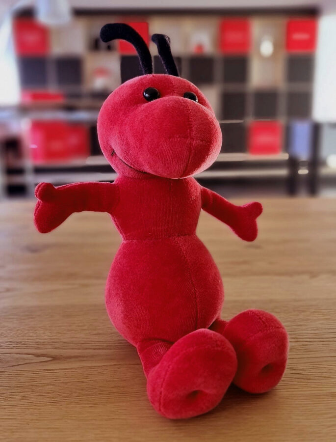 Gracias a nuestro fuerte espíritu de equipo, las hormigas conseguimos grandes cosas. Por eso el fundador de nuestra empresa, Ulrich Brandner, me creó como mascota. Nuestra empleada, Tatjana Fust, una talentosa diseñadora, dibujó mi primer boceto, y desde entonces estoy orgullosa de representar a nuestro equipo.