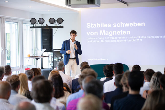 Jugend forscht-Gewinner in der Kategorie Physik Carlos Steiner präsentierte sein Projekt “Stabiles schweben von Magneten”. Beeindruckend!